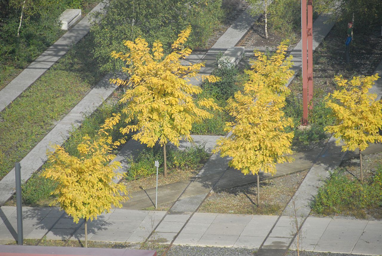 Zollverein XII - Teil der Energieachse: Kesselhaus mit Treppengiebel, davor die beiden Kompressorenhäuser. Ansatzweise sind die beiden langezogenen Werkstatthallen zu erkennen. Im Hintergrund das Sanaa-Gebäude (weißer Betonklotz). Im Vordergrund rechts ist die Wipperhalle zu sehen. / Part of the energy-axis: power house (with the gabled roof), 2 compressor houses and to some extent the 2 workshops are visible. In the background you can see the Sanaa-Building (the white concrete block). In the foreground on the right side you can see the tipper hall. |