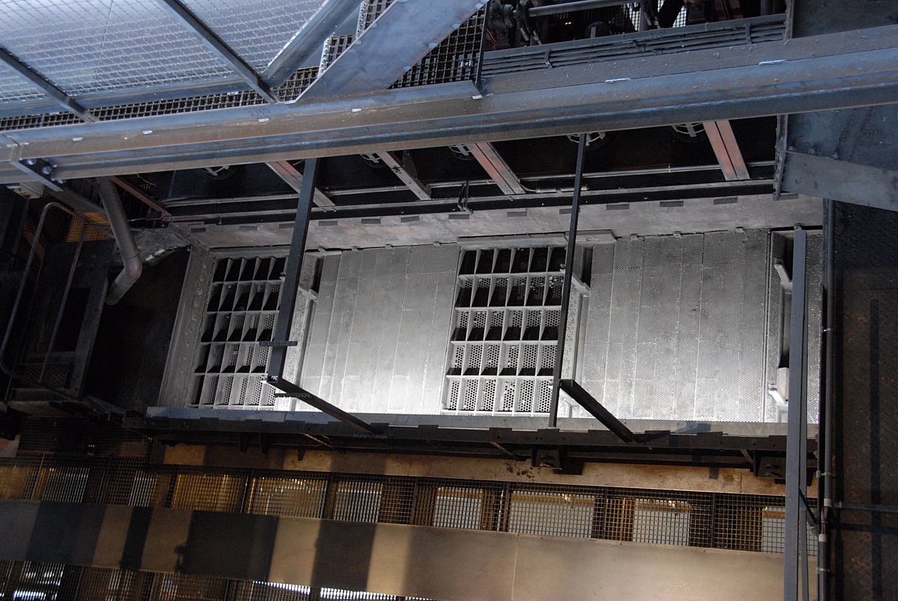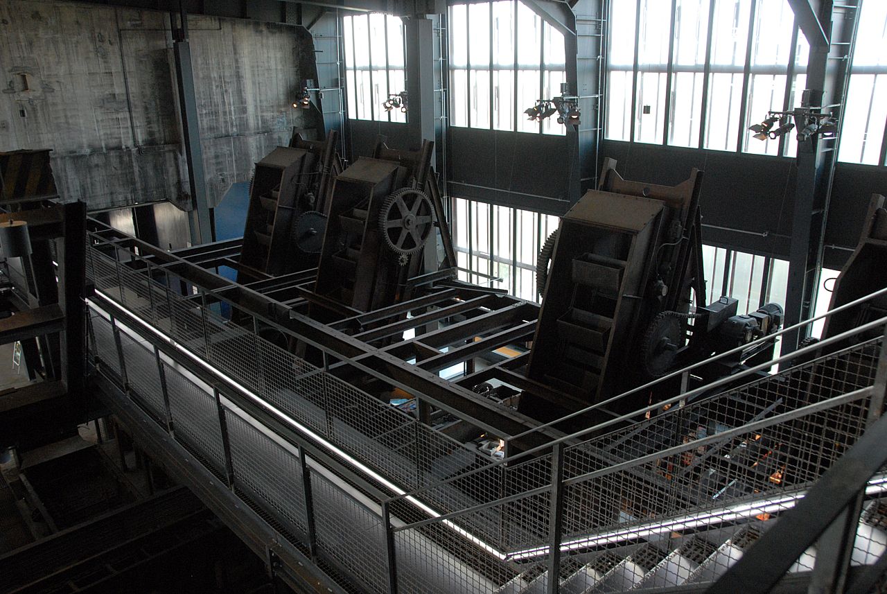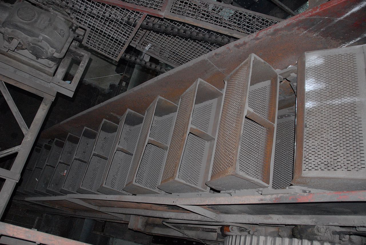 Zollverein XII - Becherwerke, die das Nebengestein der Setzbecken abführen / Bucket conveyors, used for the transportation of the dead rocks from the jigging machines |